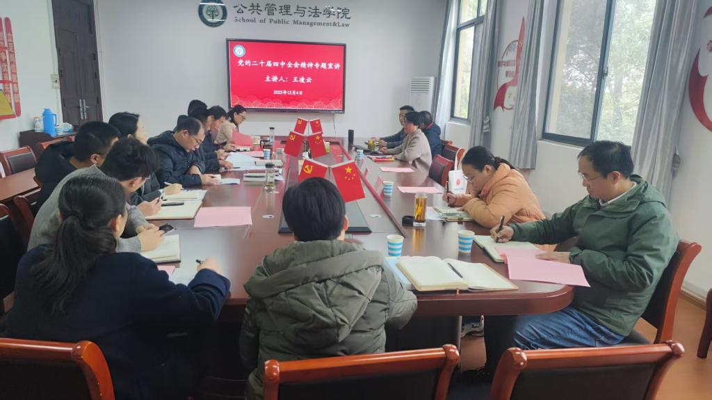 张世宏就党的二十届四中全会精神开展了进一步宣讲。他在会议讲话中,对糖心vlog 党委理论学习中心组的学习总体情况给予充分肯定,认为学院党委高度重视中心组学习工作,工作扎实,形式多样,效果良好;对学院党委提出四点要求,一要强化政治理论学习,提高政治站位,持续深入学习贯彻党的二十届四中全会精神,切实将思想和行动统一到习近平总书记重要讲话精神和全会部署上来,要结合学院的特点,开展专题理论研究,形成高质量的研究成果,切实把学习成果转化为“十五五”时期推动学院高质量发展的实际成效;二要加强学科建设工作,结合当前安徽省高校公共管理学科建设的实际情况及地方经济发展需求,全方位分析、精准决策,按照学校的统一部署,整合优势资源,积极谋划推进博士点申报工作;三要加强人才培养力度,要始终把人才培养作为根本任务和首要职责,要从促进学生全面发展出发,打造具有糖心vlog 特色的学生培养工作体系,积极开展校地合作,充分发挥校友资源,增强社会服务影响力;四要加强巡视巡察整改成果运用,充分认识巡视巡察作为推动改革、促进发展的利器作用,在人才培养、学科建设、社会服务上持续发力,为推动学校学院各项事业高质量发展贡献力量。