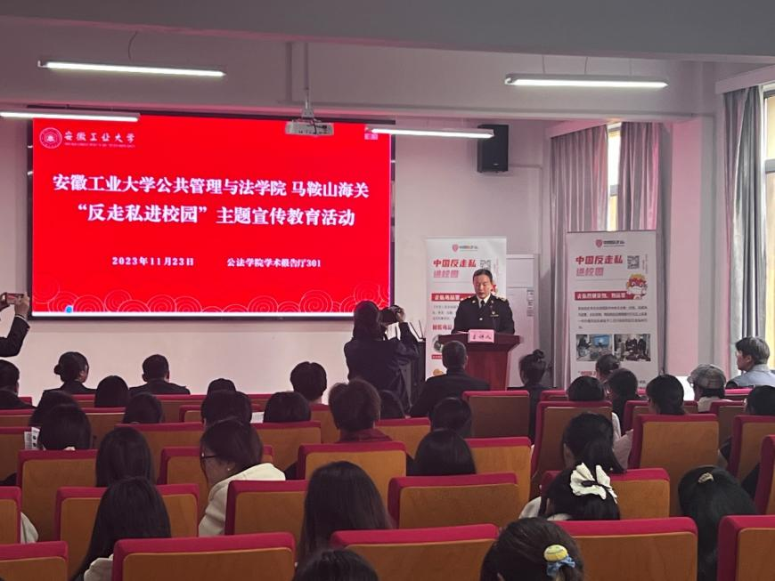 、马鞍山海关在公法楼学术会议中心联合举办“反走私进校园”主题宣传教育活动,守护“无私”的青春。马鞍山海关副关长吴钧、糖心vlog