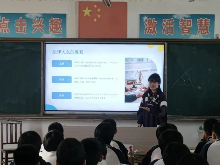 宣讲伊始,实践队成员王潇然进行了自我介绍并围绕法的概念、法的渊源、法律关系、法律责任以及法律程序等方面进行了讲解,重点宣传了关于未成年人的基本权利和义务的规定,向同学们讲解了与他们生活学习密切相关的法律法规,并结合日常生活中的案例教会他们运用法律武器维护自己的合法权益。语言通俗易懂,旨在让同学们体会到法在生活中处处可见,法与生活密不可分,正是在法的保护下社会才能和谐稳定,我们的日常生活才能够得以正常运转。同学们认真听讲,积极提问,纷纷阐述了自己对法的看法和理解,现场氛围轻松和谐,收获了良好的效果。