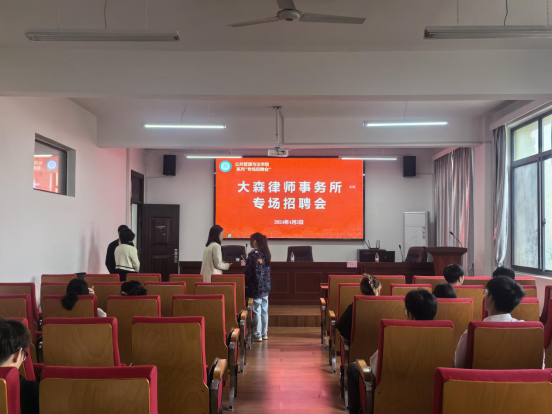 联合安徽大森律师事务所举办法学毕业生专场招聘会,助力2023届毕业生高质量充分就业,拓宽2024届毕业生实习实践渠道,专场招聘会在公法楼301举行。