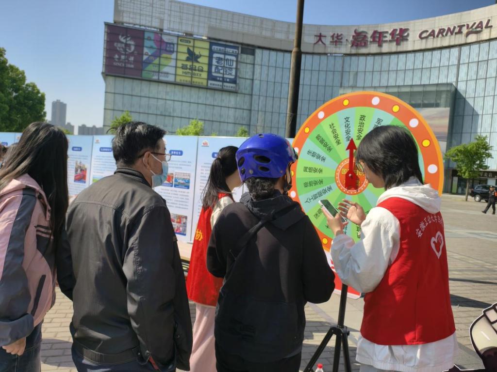 师生结合《中华人民共和国国家安全法》《中华人民共和国网络安全法》等内容,耐心解答群众关于反校园贷、个人信息保护等法律疑惑,展现专业风采;在安全知识大转盘前,参与者转动转盘回答国家安全领域问题,连续答对者喜获奖品,现场气氛热烈。