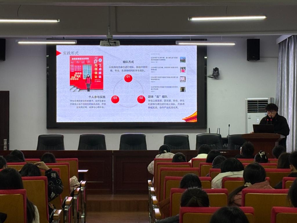 会上,余天阳主要说明了本次寒假社会实践的内容主题及形式,为同学们提供了详细的实践指导与安全注意事项。通过结合往届优秀实践案例,详细介绍了如何在安全的基础上开展本次社会实践活动。同时鼓励同学们积极参与本次“返家乡”寒假社会实践,激发学生参与热情。会上对同学们关于社会实践的疑问和困惑进行了细致解答。