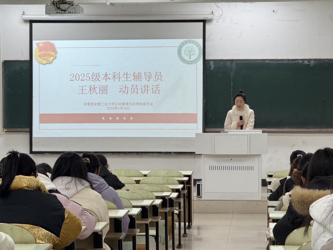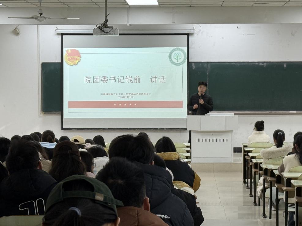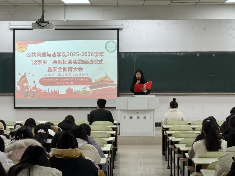 实践部于1月10日上午在教三南103教室举行2025-2026学年“返家乡”寒假社会实践启动仪式暨安全教育大会,学院团委书记钱前、2025级辅导员王秋丽和2025级全体本科生参会。
