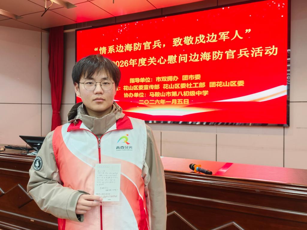 “情系边海防官兵,致敬戍边军人”主题活动于2026年1月5日在马鞍山市第八初级中学礼堂顺利举行。此次活动是马鞍山全国双拥模范城年度重要双拥共建活动,由市双拥工作办公室、共青团市委全程指导,花山区委宣传部等单位联合主办,市八中少先队员、团员代表及花山区青春花火青年志愿者代表共同参与,活动旨在深化军政军民鱼水情,传递对边海防官兵的深切关怀。