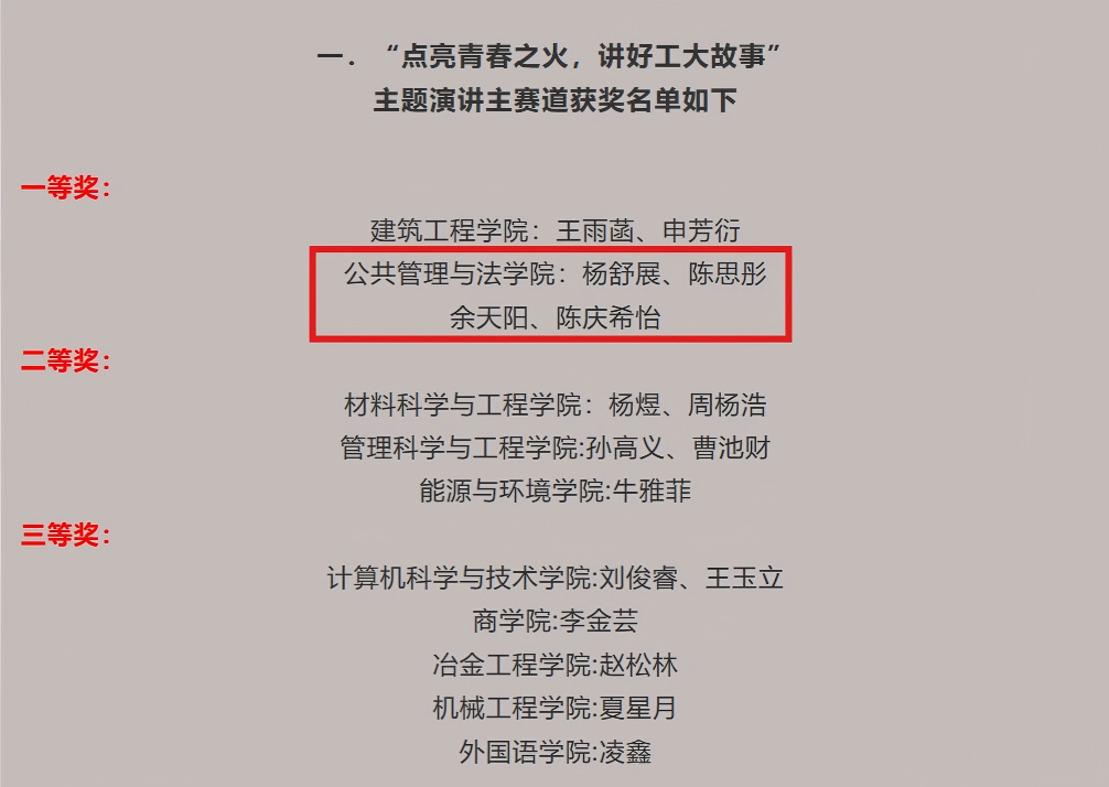 在“点亮青春之火,讲好工大故事”主题演讲主赛道荣获一等奖!