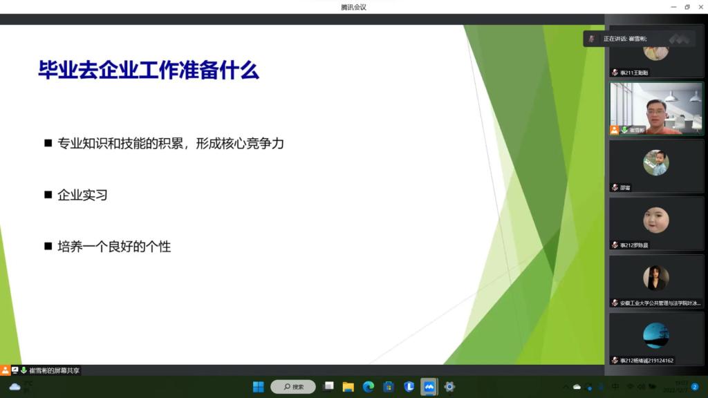 崔雪彬学长结合自身求学经历,介绍了大学期间应该如何学习,如何培养能力,强调只有增强专业知识和技能的积累才能形成核心竞争力,在以后进一步求学和工作中才能获得更多机会。最后,他希望即将走上工作岗位的大四同学,在以后工作中培养一个良好的个性,保持外化而内不化,始终坚守初心。