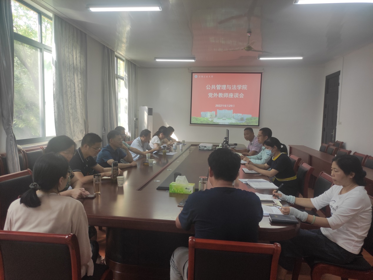 座谈会上,徐济益院长向党外教师通报了学校“十四五”发展规划和学院“十四五”规划制订情况,学院领导孔东菊、杨哲、李萍分别介绍了2022年上半年教学、科研、学生管理等主要工作开展情况和下半年重点工作安排。参会人员重点就学院工作进行了交流,并提出了诚挚有益的意见和建议。