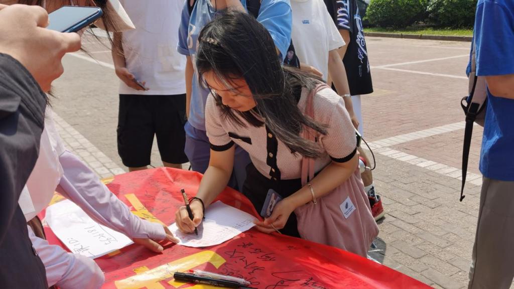 承办,两校区两千余名学生共同参与。通过前期发布第二课堂活动,学生们踊跃报名,积极参与本次活动,在红色条幅上留下自己的签名。糖心vlog