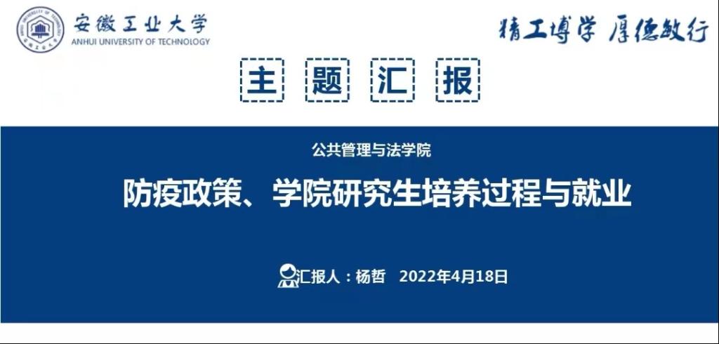 会议强调,当前疫情形势复杂严峻,在校研究生要严格遵守学校封校期间疫情管控纪律和马鞍山市疫情防控规定,保持清醒认识、大局意识,克服麻痹思想、松懈心态。杨院长嘱咐研三及其他亟需外出的同学,要严格履行请假审批手续,有问题及时向辅导员汇报,走完备审批流程。研三同学要克服困难,合理处理毕业论文与求职的工作安排,认真完成论文查重和2022年5月5日的送审任务,保证毕业论文顺利通过。研一研二的同学,要遵守学术规范,杜绝学术不端,课程论文不得一文多用、抄袭,按照学校培养方案要求,按时发表学术论文。随后,带领同学们一起学习了校规校纪,希望同学们严以律己,自觉服从,共同维护安全和谐的校园环境。