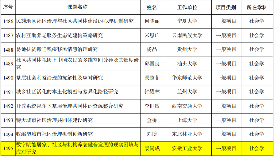 2023年9月4日,全国哲学社会科学规划办公室公布了2023年国家社科基金年度项目和青年项目立项名单。经专家评审、社会公示并报全国哲学社会科学规划领导小组批准,袁同成老师申报的《数字赋能居家、社区与机构养老融合发展的现实困境与应对研究》获批2023年国家社科基金年度项目。