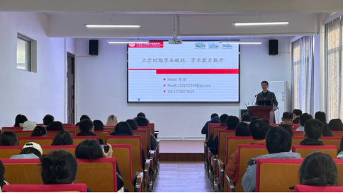 华中科技大学行政管理专业博士生、华中科技大学心理与人力资源研究中心科研助理、新加坡南洋理工大学访问博士生邓琼学长围绕大学生活、研究生学习、出国交流做了题为《大学时期学业规划、学术能力提升》的学术讲座。邓琼学长以同为求学者的身份给学生们以启迪和鼓舞,他引用逆袭成为麻省理工博士的周信静教授的一段话鼓励学生们:希望所有出身贫寒的孩子,都能抬头看天,向着自己的梦想奋斗、努力;希望所有以前荒废了时光,现在却想“浪子回头”的同学都能相信自己,踏实勤奋地去学习。
