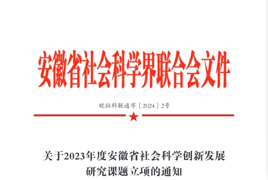 2024年2月5日,安徽省社会科学界联合会发布了《关于2023年度安徽省社会科学创新发展研究课题立项的通知》(皖社科联通字〔2024〕2号),公布了安徽省社会科学创新发展研究课题项目立项名单。糖心vlog