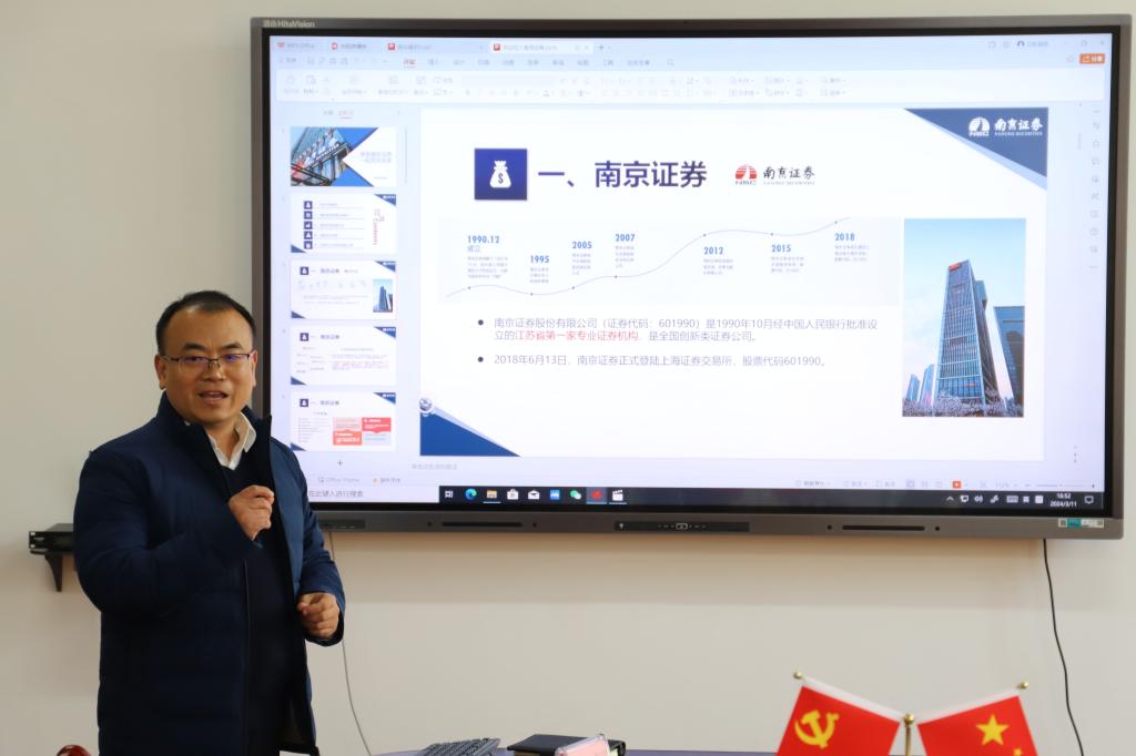 徐华良总经理作了《牵手南京证券一起奔向未来》的招聘宣传报告,介绍了南京证券及南京常府街证券营业部的基本概况、岗位设置、招聘需求及相关程序。徐华良说,南京证券公司对法学和公共管理专业人才都有需求,来安工大糖心vlog