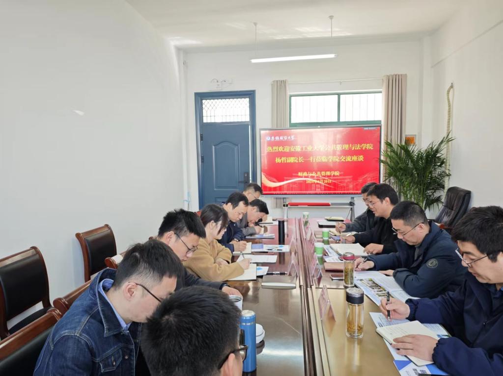 副院长杨哲、劳动与社会保障系主任汪伟、公共管理学学硕负责人卢成会、MPA管理中心主任问延安、劳动与社会保障系新进博士宫仁贵一行5人赴安徽财经大学财政与公共管理学院调研与交流。安徽财经大学财政与公共管理学院副院长王浩林、副院长杨晓妹、劳动与社会保障系主任冯广刚、副主任周德水、行政管理系主任张志胜、副主任刘运青、土地资源管理系副主任徐畅、MPA教育中心副主任王金丰等出席座谈会。