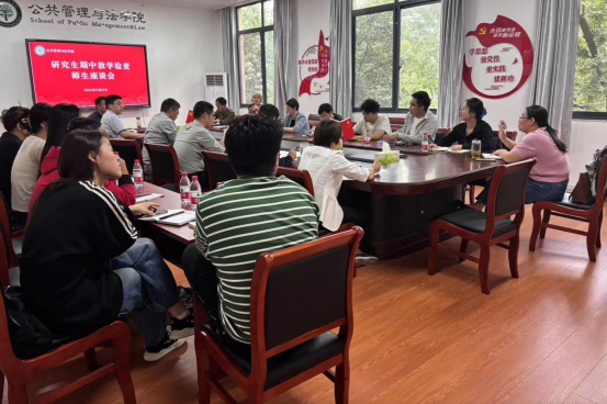 座谈会上,学生们踊跃发言,从导师与学生关系、教师授课、学生管理等方面提出了意见和建议。教师们认真倾听每一位学生的发言,以高度的专业素养和责任感对提出的问题进行了深入剖析和回应。公共管理学硕负责人卢成会老师、MPA负责人问延安老师、法硕负责人李青老师,学院导师代表袁同成老师、吴丽丽老师、施磊磊老师、艾东老师、曹祥莹等老师对研究生培养和发展给予建议。
