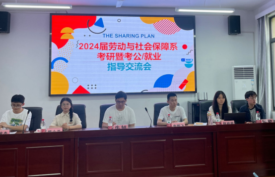 为进一步提高专业培养质量,实现更高质量的考研、考公以及就业,6月3日晚,劳动与社会保障系在公法楼301报告厅举办了考研暨考公/就业经验交流会,交流会邀请了劳动与社会保障系2024届毕业生程黎、赵梓萌、李鹏飞、牛旭、梅小兰、朱俊杰等六位同学作经验交流发言。