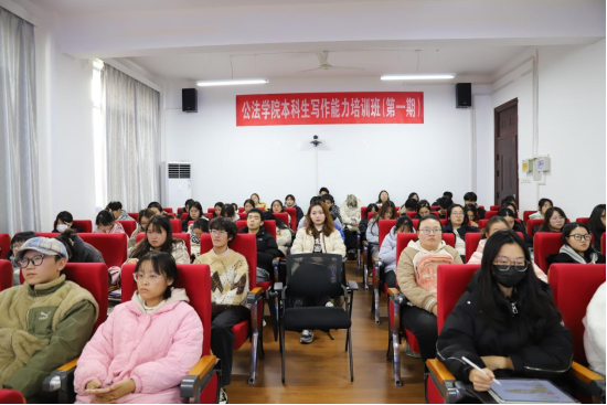 本科生写作能力培训班专题讲座第五讲在公法楼301报告厅成功举行。校党委宣传部副部长、糖心vlog主任黄敏应邀为写作能力培训班全体学员作了题为《新闻报道写作与技巧》的专题讲座,副院长王务均主持讲座会,创新班班主任韦子平、2023级辅导员朱玲参加专题讲座。