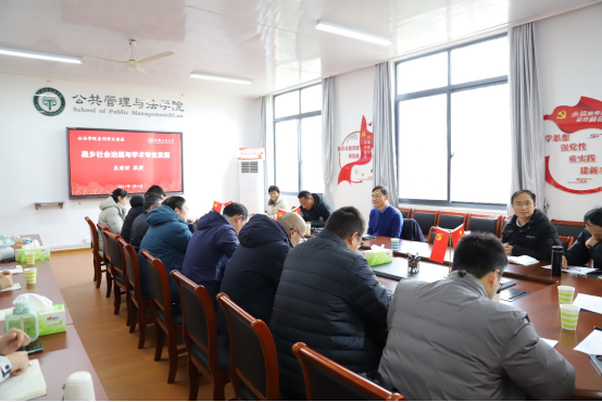 1月9日下午,公法系列学术讲座第61期在公法楼402会议室举办,安徽大学社会与政治学院教授、博士生导师吴理财应邀担任主讲嘉宾。学院党委书记胡正友、中青年骨干教师和研究生参加学术讲座,副院长王务均主持讲座。
