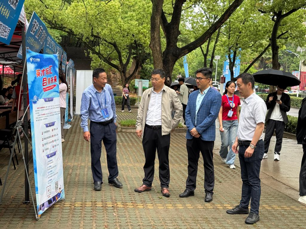 招聘会现场气氛热烈,校党委副书记王俊,副校长闵凡飞,学生工作部副部长赵传刚等领导亲临现场指导并看望参会企业代表。学院党委书记胡正友、党委副书记周浩然现场与用人单位深入交流,了解行业动态及人才需求,积极推介学院毕业生。