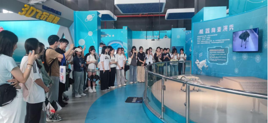 第一站:科技强国,感受创新力量。在科技馆,一场别开生面的机器狗表演开启了科技探索之旅。智能机器狗精准的机械动作与趣味互动,生动展现了人工智能技术的发展成就。大国重器展区内,盾构机、“蛟龙号”、C919大飞机等模型系统呈现了我国在高端装备制造领域的突破性进展。讲解员深入浅出的解说,让同学们深刻理解了“科技是国之利器”的深刻内涵。