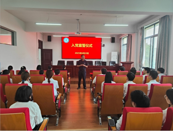 仪式在庄严的《国歌》中拉开帷幕,与会党员教师为新发展党员佩戴党员徽章。随后,在胡正友的带领下,全体党员面向鲜红的党旗庄严宣誓。胡正友作了仪式总结讲话,向新发展党员表示祝贺,他勉励新发展党员主动学习党的理论知识,提高政治修养,时刻淬炼自己的党性,以党员的标准严格要求自己;他指出,一个党员就是一面旗帜,要积极参加党内政治生活,做同学们的榜样,带动身边同学共同进步;他强调,新发展党员要认真学习党章党规,积极贯彻中央八项规定精神,牢记入党誓词,扣好“第一粒扣子”,始终做合格党员。