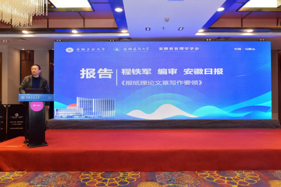 副院长(主持工作)杨哲教授主持。全国公共管理专业硕士学位教育指导委员会委员、上海交通大学国际与公共事务学院副院长刘帮成教授作了题为《数智时代中国公共管理知识创造的机遇与挑战》的报告;全国公共管理专业硕士学位教育指导委员会委员、南京大学政府管理学院教授李鹏作了题为《数字政府的技术制度双向调试治理》的报告;湘潭大学教授、湖南省行政管理学会副会长梁丽芝、作了题为《数字乡村治理中的基层干部“技术增负”:样态、生成与规制》的报告;安徽日报理论部副主任、编审程铁军作了题为《报纸理论文章写作要领》的报告。
