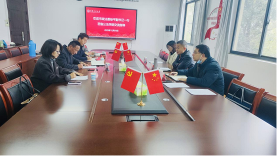 座谈会上,徐平介绍了市委政法委在推进地方法治建设等方面的工作情况,胡正友介绍了学院和法学系的建设和发展情况。双方重点就共同举办好“习近平法治思想”知识答题挑战赛进行了深入细致的交流探讨,表示将此次竞赛活动作为面向司法干部和青年学子普及习近平法治思想、弘扬法治精神的有效形式,认真筹备,确保活动圆满成功。