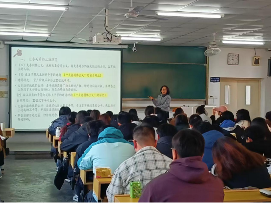 于12月3日组织开展了优秀课程观摩活动。学院领导班子成员、各系主任及副主任、院督导专家、青年教师等参加了此次教学观摩。本次观摩课程为法学系侯霞老师主讲的《婚姻家庭法学》,授课内容聚焦于“婚姻的效力”。侯老师围绕夫妻人身关系的历史沿革、夫妻姓名权、人身自由权以及婚姻住所决定权等核心议题展开讲授,系统阐述了婚姻关系中的权利义务内涵及其实际应用。