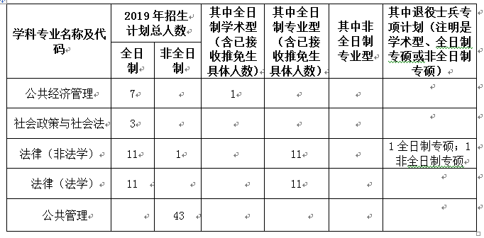 注:推免生计划已于 2018年10月完成,此次复试应在2019年总招生规模人数减去公共经济管理学生1人。