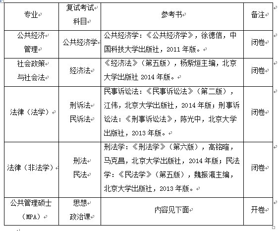 公共经济管理、社会政策与社会法、法律硕士(法学、非法学)、公共管理硕士(MPA)复试加试课目、外语成绩、综合面试直接以100计算。