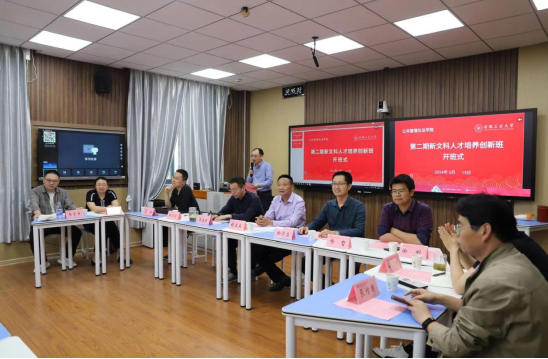 在智慧教室201隆重举行第二期新文科创新人才培养创新班开班式。学院党政领导、各系主任、院实习实训中心主任、第一期创新班学员代表、第二期创新班班主任和全体学员出席开班式。