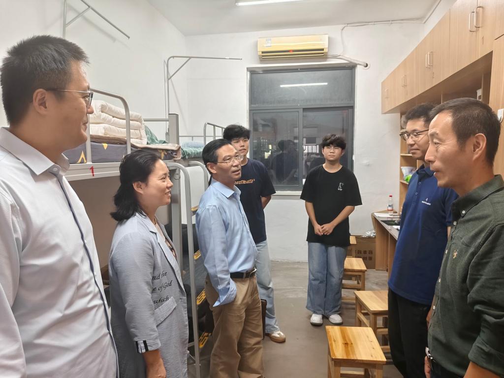 徐刚、金凤涛两位退休教师走进新生宿舍,与同学们面对面交流,送去学院的关怀与期望。学院党委书记胡正友,党委副书记、纪委书记、学生工作副院长周浩然,正处级组织员江文丽,副院长王务均,以及新生辅导员邢维迢、王秋丽陪同走访。